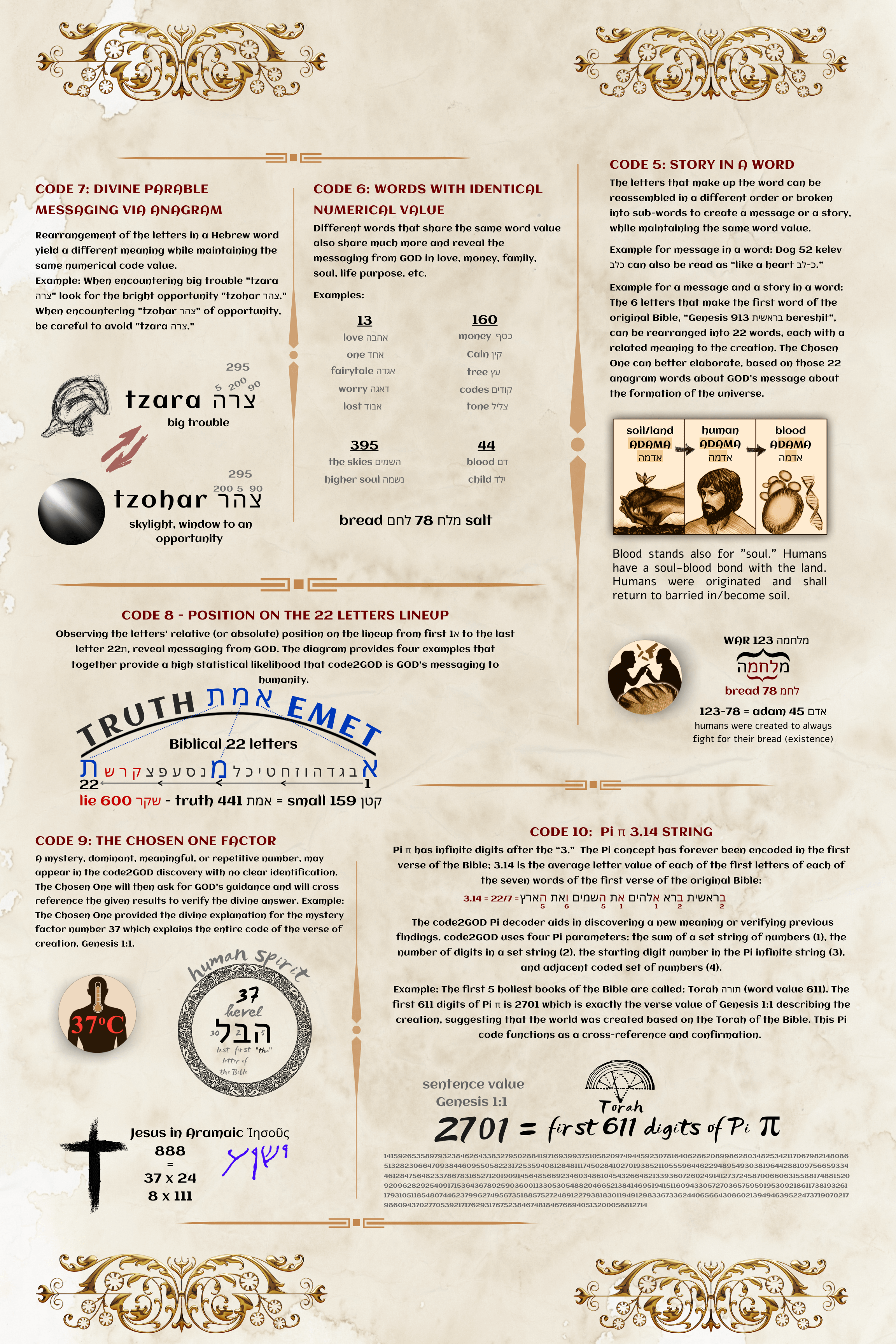 code2GOD is a scientific system used to discover GOD’s messaging to humanity from the original Bible (Hebrew) and the authentic WORD OF GOD. The results are turned into the world’s most valuable art to enlighten the world with answers to humanity’s most desired questions.