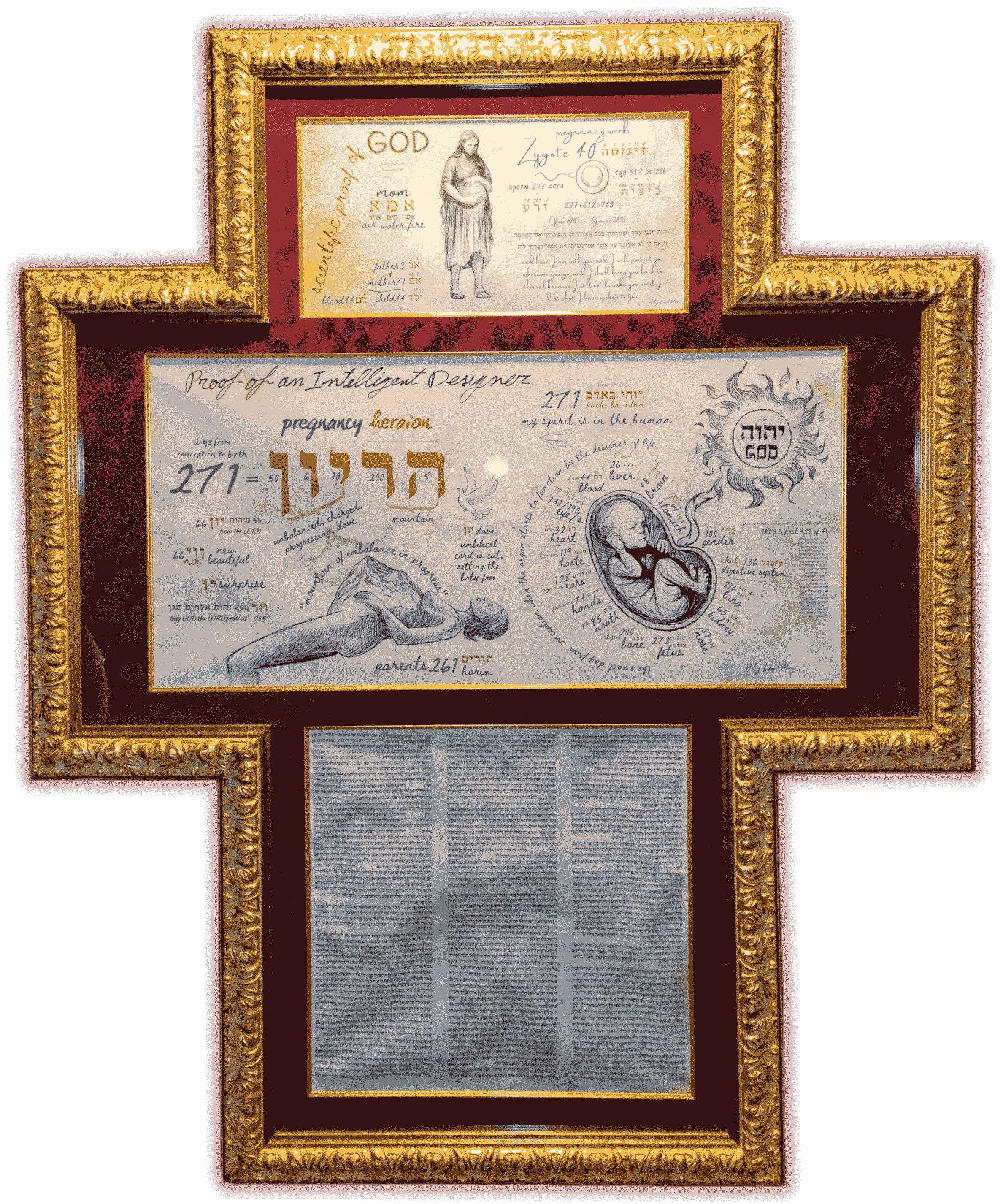 The Biblical word “הריון heraion pregnancy” is coded 271, which is the exact number of pregnancy days. Each of the fetus’ organ names is coded with a unique number that reveals the exact number of days from conception to organ functionality, which can be known only to the creator of life.