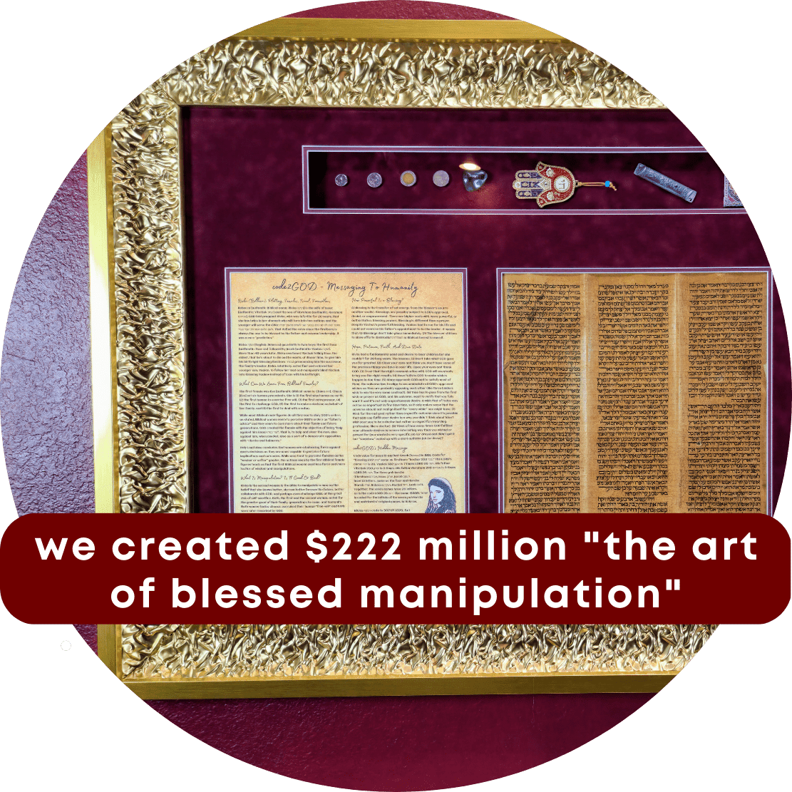 We do so by successfully decoding the original Bible to discover GOD’s messaging to humanity, using our patented code2GOD system. We will soon provide answers to life’s most sought-after questions, such as: “What is our purpose in life?”, “What is after death?” or, “How to maximize life?” We fashion our discoveries into the world’s most valuable museum art. We also educate the world about the inaccuracy of human-translated books like KJV and others. We enlighten the world about the discrepancies between the original Bible and religious manipulations/scares.