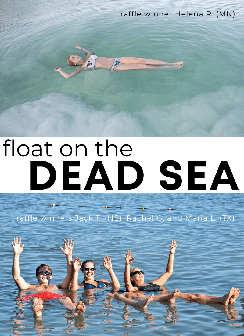 Winners’ prize: Flights NY>ISRAEL>NY + $300 flight allowance to get to NY, 8 days of hotels (2 per room) and transportation everywhere in Israel with a personal tour guide, large Israeli breakfast, drinks, event tickets, Jerusalem cross blessed on Jesus’ Grave, 2 original Bible classes with Holy Land Man | trip value $6,400 Questions? ask us